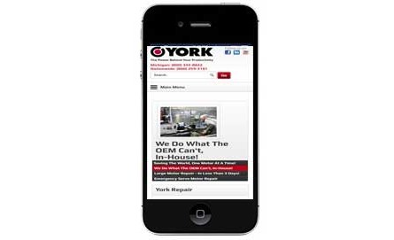 York Repair Mobile features all the same functionality as the standard site, but in mobile form. It features repair slip creation, learning center with videos, and correctly sized images and links.